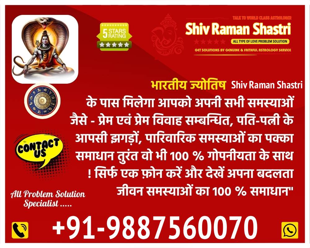 In today's fast-paced world, where uncertainties and challenges are a part of life, seeking guidance and support from experienced individuals becomes crucial. One such renowned figure in the field of astrology is Shiv Raman Shastri Ji, a world-famous astrologer with over 20 years of experience. With a proven track record and a client base of more than 18000 satisfied individuals, Shiv Raman Shastri Ji has established himself as a trusted advisor in providing expert solutions. Whether it's matters related to love, relationships, career, finance, family, marriage and relationship or any other aspect of life,Shiv Raman Shastri Ji offers unparalleled insights and guidance to navigate through life's complexities.
